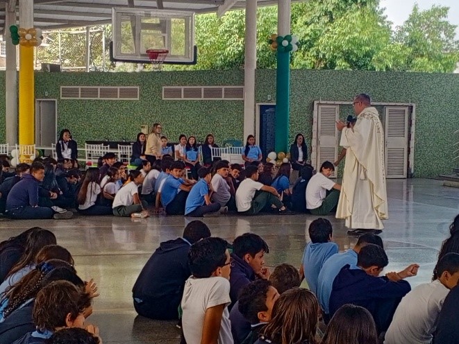 Siempre es necesario nutrir el espíritu La eucaristía de la semana se celebró el día jueves, por nivel, en el polideportivo del colegio. Se destacó la idea de no perder de vista el norte y el propósito de la vida y que, como San Agustín, debemos ponernos en movimiento y buscar lo que realmente nos haga mejores y felices. La felicidad se alcanza con la paz y el amor, siendo Dios el verdadero camino.